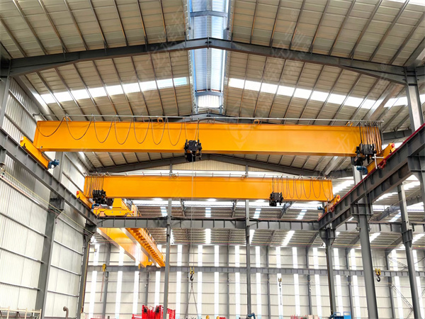 欧洲桥式起重机,具有自重轻,结构小巧,能耗较低,在桥架上设置一台小车及起升机构,小车可以前后运行,大车运行等机构,实现物料物体在立体空间搬运,欧式起重机采用独特的设计理念,具有尺寸小,重量轻,轮压小的特点。与传统起重机相比,吊钩至地面(地坪)的极限距离小,净空高度低,起重机更能贴近前面作业,起升高度更高,实际增加了现有厂房的有效工作空间。由于起重机具有重量轻,轮压小的特点,新厂房空间可以设计的更小,功能更齐全。较小的厂房意味着初期建设投资,以及长期供热、空调及其他维护费中可以节省一笔可观的资金。