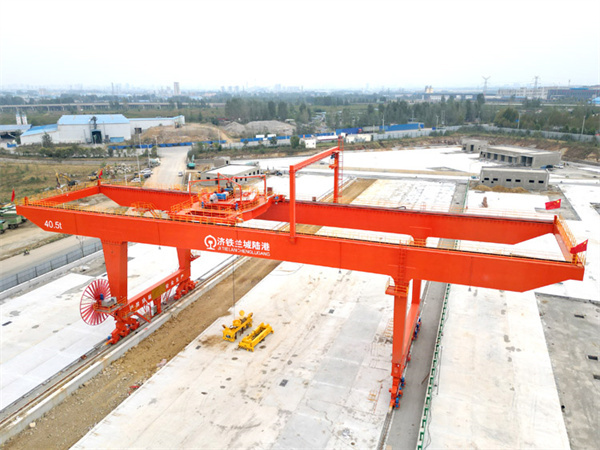 轨道式集装箱门式起重机,又叫做集装箱龙门吊,是在集装箱码头、铁路转运场、堆场专用的门式起重机,用于集装箱的装卸、搬运和堆放。它的金属结构像门形框架,承载主梁下安装两条支脚,可以直接在地面的轨道上行走,主梁两端可以具有外伸悬臂梁。